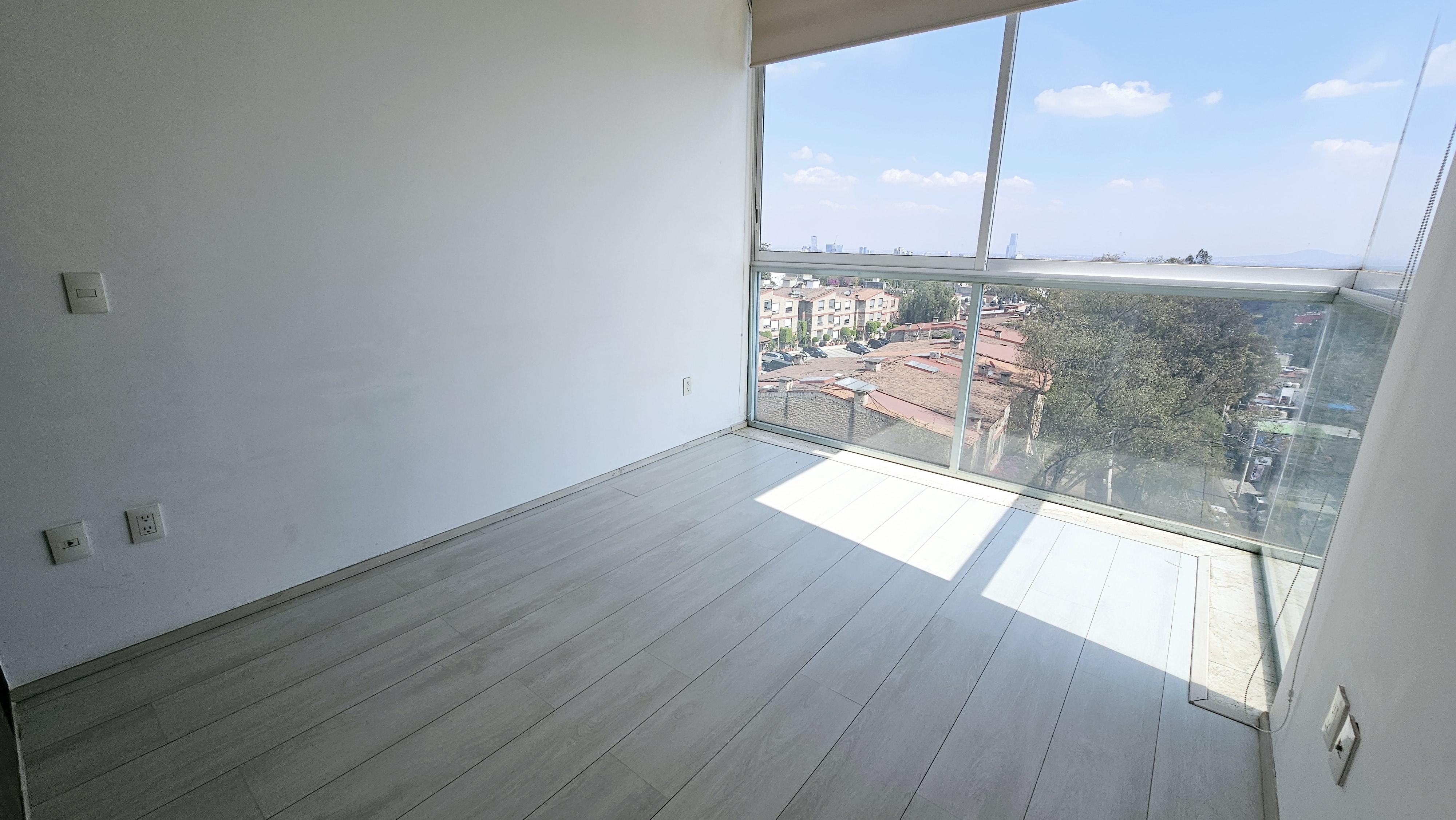 Departamento en venta sobre Desierto de los Leones, cerca de Televisa San Ángel, a 2 km de Periférico y a 3km de la supervía. Es muy iluminado, la altura de 2.90 de piso a techo ayuda mucho a crear una sensación de mayor amplitud. El depa mide 73.7m² habitables y por su ubicación exterior cuenta con maravillosas vistas ::: Distribución ::: 2 recámaras 2 baños 2 cajones de estacionamiento Sala Comedor Cocina Área de lavado Bodega Jurídicamente perfecto :: Amenidades :: Vigilancia 24 hrs, CCTV, Lobby, Gym, Ludoteca y Jardín Central. ¡Agenda tu cita!