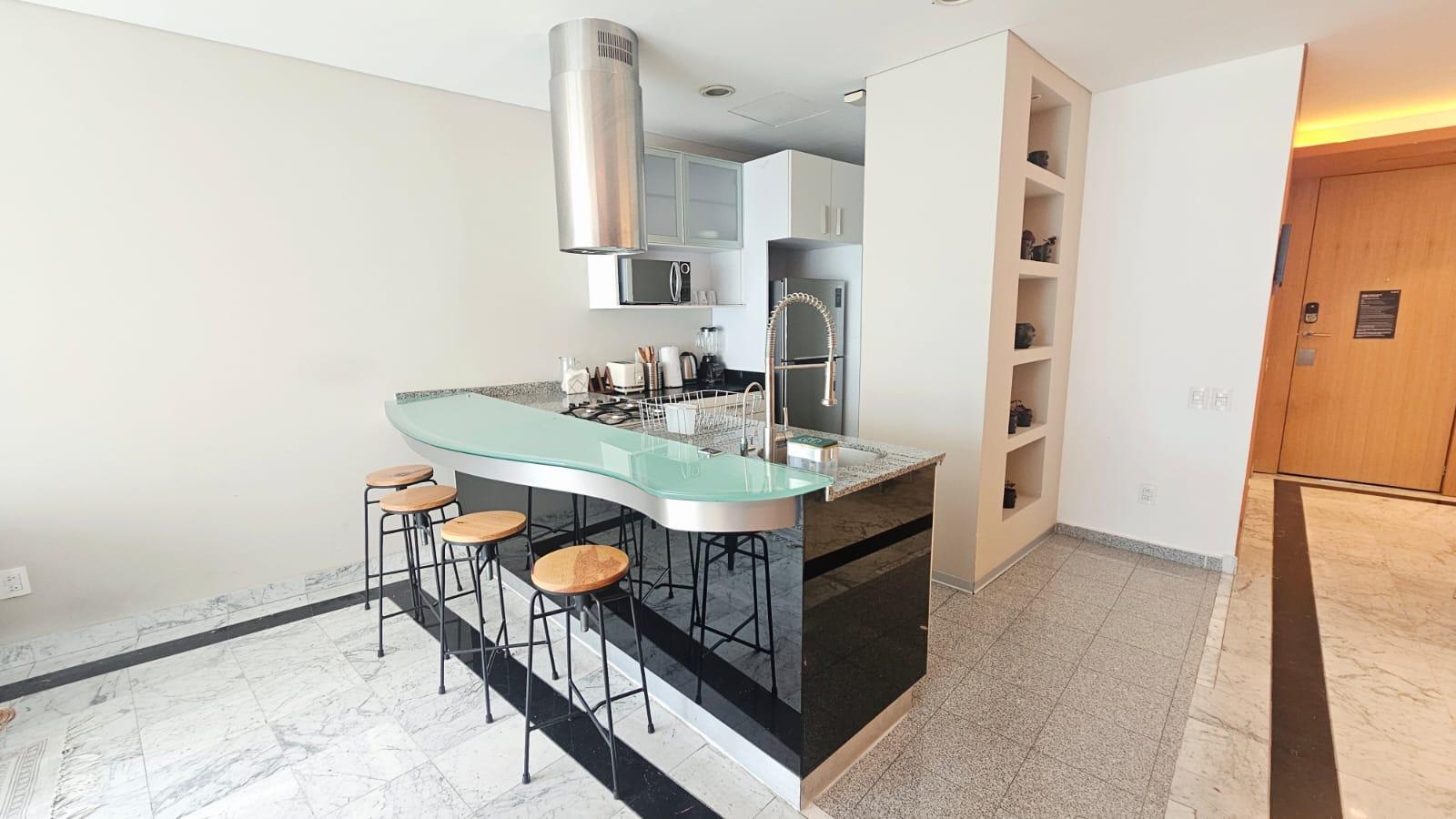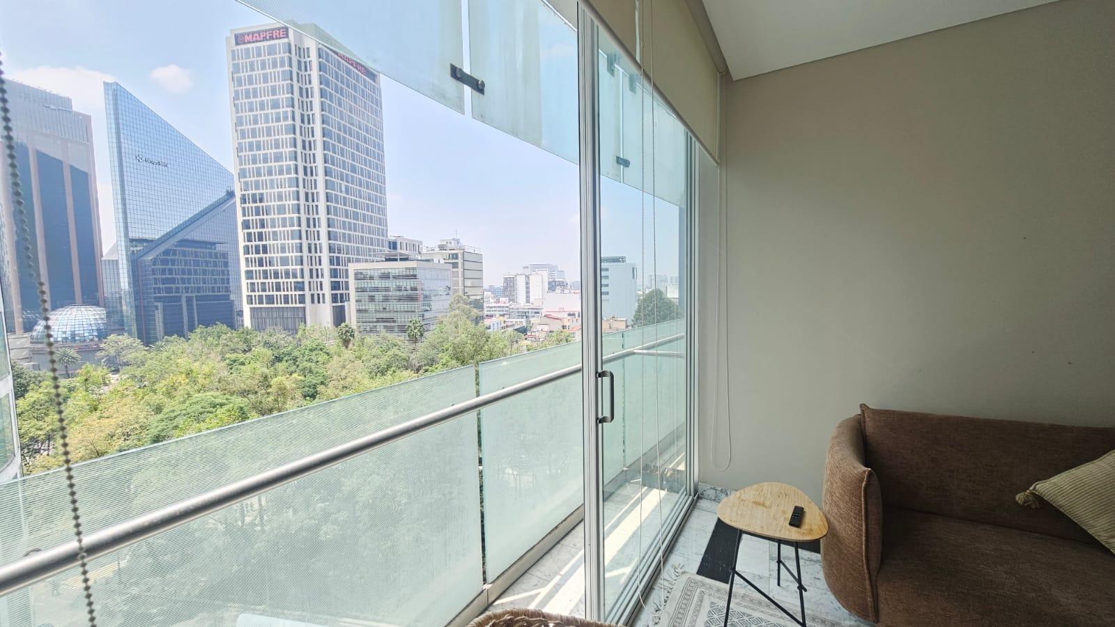 Reforma 222 se distingue por su elegancia contemporánea y su ubicación privilegiada sobre la icónica Avenida Paseo de la Reforma, este exclusivo rascacielos ofrece un estilo de vida único en la ciudad, con lujosos apartamentos que combinan diseño vanguardista y vistas panorámicas que quitan el aliento. 1 Recámara muy luminada con closet 1 Baño Cocina Abierta Sala Comedor 2 cajones de estacionamiento Balcón AMUEBLADO Vista a Reforma :: Amenidades :: Gimnasio Pista de correr Salón de Eventos Múltiples Alberca Sala de cine Sky Garden 3 Elevadores Elevador de carga Centro Comercial Mantenimiento incluido Reforma 222 redefine la experiencia residencial en el centro de la capital mexicana, siendo el lugar ideal para aquellos que buscan vivir con estilo y sofisticación. ¡ AGENDA TU CITA ! Requisitos de Renta: 1 mes de renta, 1 depósito, Póliza jurídica y Fiador u Obligado Solidario, Comprobantes de ingresos, Referencias personales