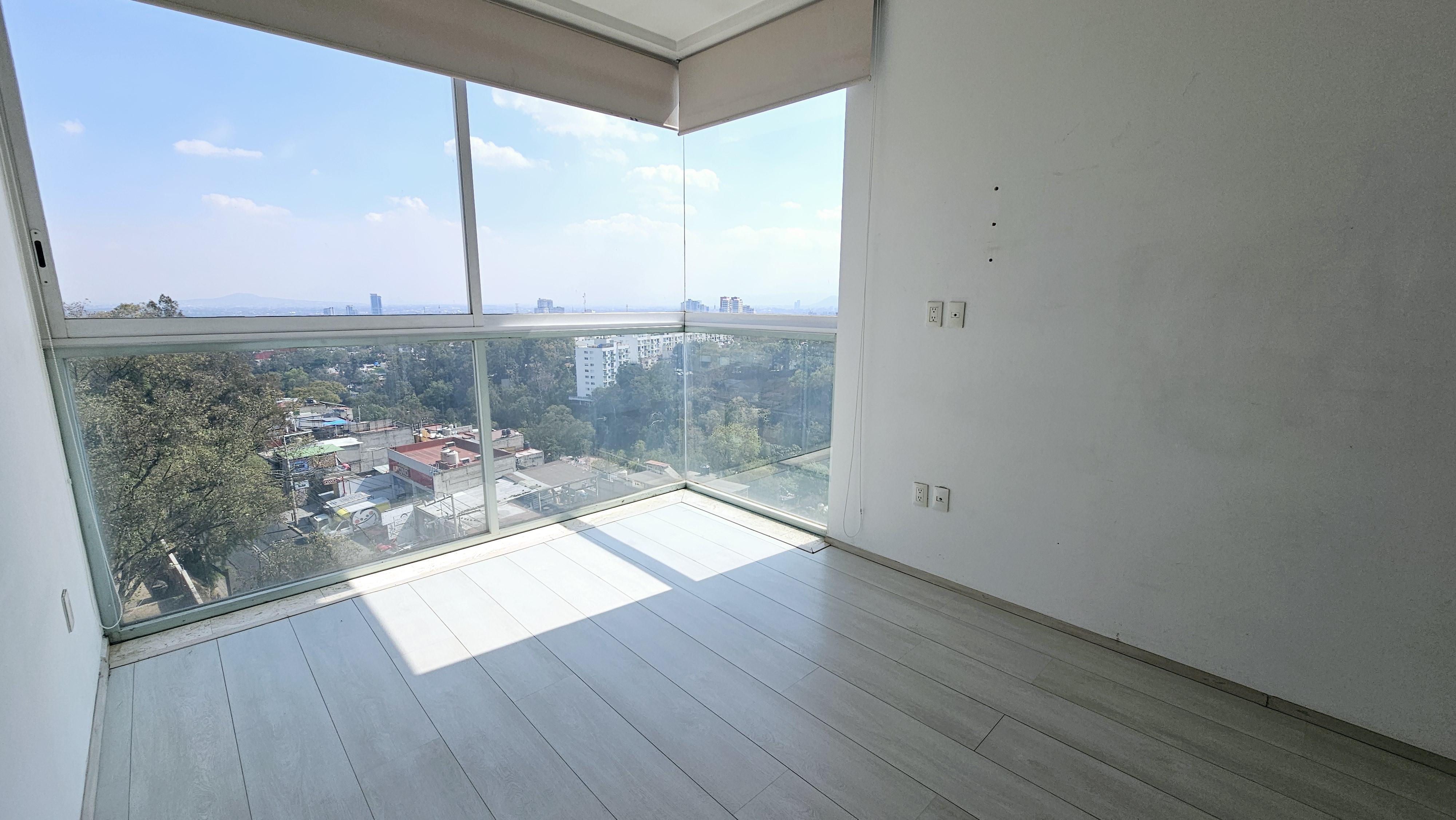 Departamento en venta sobre Desierto de los Leones, cerca de Televisa San Ángel, a 2 km de Periférico y a 3km de la supervía. Es muy iluminado, la altura de 2.90 de piso a techo ayuda mucho a crear una sensación de mayor amplitud. El depa mide 73.7m² habitables y por su ubicación exterior cuenta con maravillosas vistas ::: Distribución ::: 2 recámaras 2 baños 2 cajones de estacionamiento Sala Comedor Cocina Área de lavado Bodega Jurídicamente perfecto :: Amenidades :: Vigilancia 24 hrs, CCTV, Lobby, Gym, Ludoteca y Jardín Central. ¡Agenda tu cita!