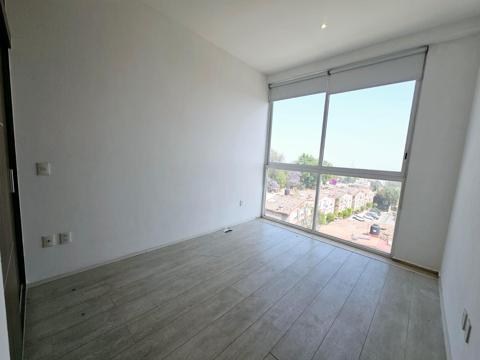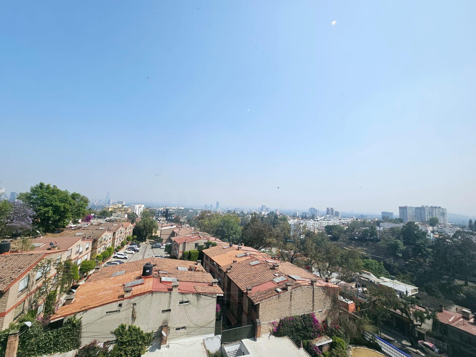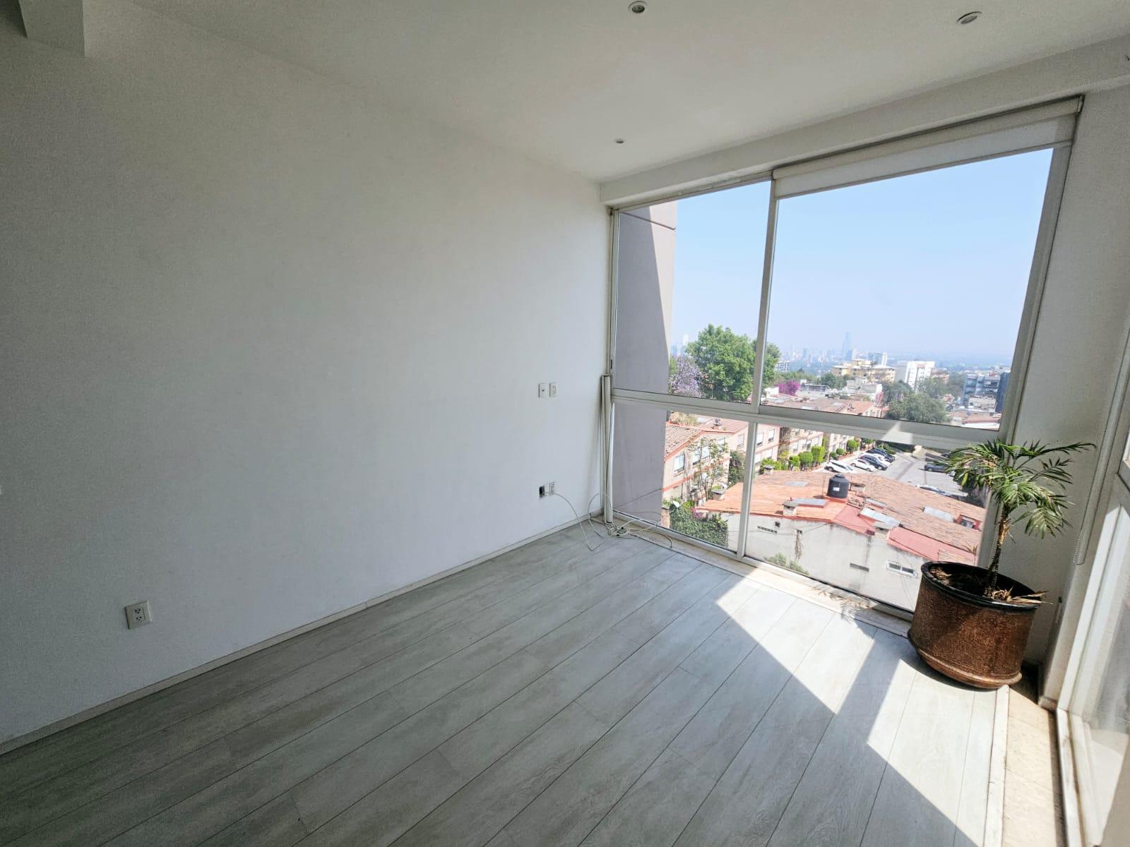 Departamento en renta sobre Desierto de los Leones, cerca de Televisa San Ángel, a 2 km de Periférico y a 3km de la supervía. Es muy iluminado, la altura de 2.90 de piso a techo ayuda mucho a crear una sensación de mayor amplitud. El depa mide 72m² habitables más 72 m² de RG privado , por su ubicación exterior cuenta con maravillosas vistas ::: Distribución ::: 2 recámaras 2 baños 3 cajones de estacionamiento Sala Comedor Cocina Área de lavado RG privado :: Amenidades :: Vigilancia 24 hrs, CCTV, Lobby, Gym, Ludoteca y Jardín Central. :: REQUISITOS :: 1 mes de renta, 1 mes de depósito, Póliza Jurídica, Fiador u Obligado Solidario, Comprobantes de ingresos, Referencias personales ¡Agenda tu cita!